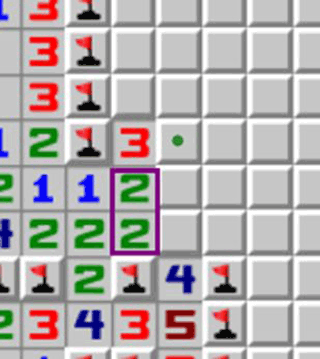 定式变形,是一个定式不以最基本的形式出现的情形。有时一些数字旁会有已确定的雷影响,此时需要先将数字减去周围已确定的雷数,得出真实数字,再运用定式。