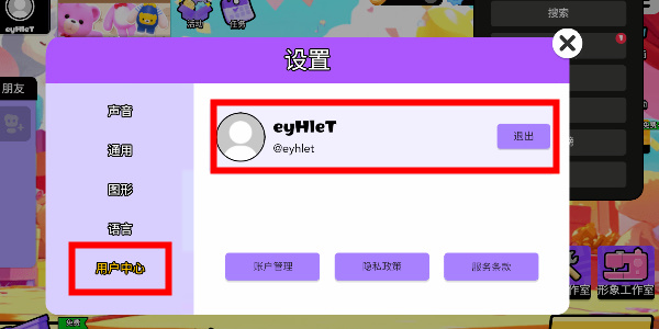 4、在设置中点击“用户中心” →“退出”当前账号;