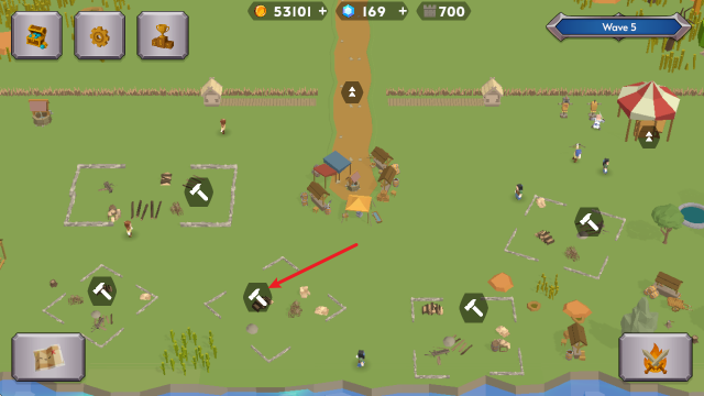 1、进入游戏后就能够看到带有建造图标的土地,点击即可开始建造。