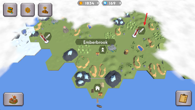 1、主界面中点击左下角的地图,然后点击这样带有剑的区域即可进攻。
