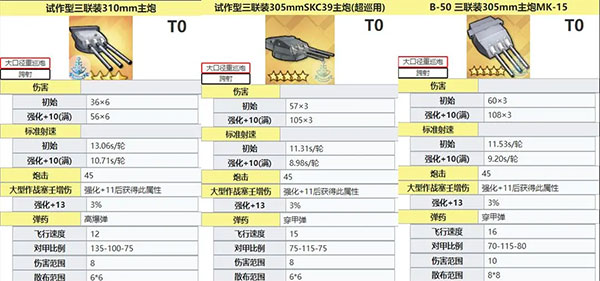 三联305skc39(下左二)奥丁炮,双联381(下右一),两门炮都是高射速伤害一般的主炮,适合极速虐菜环境。