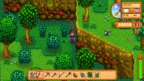 4、斧头其实是在玛尔妮农场的南边。下图已经标明位置了,箭头是行走方向。