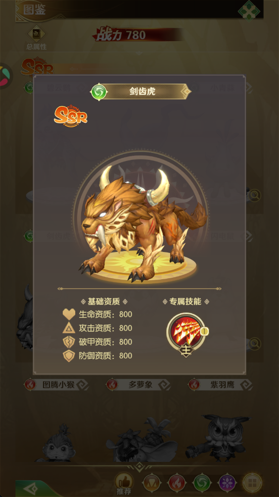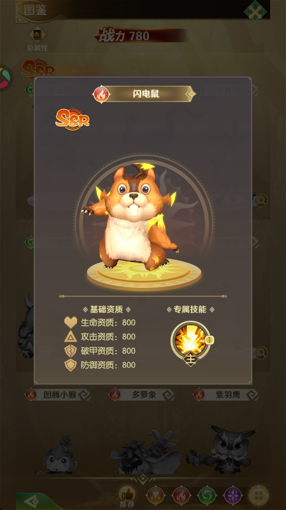3、随着等级的开放,宠物星阵也会随之开放。一人带三宠,再也不是梦!三只宠物可以轮流出战,随意切换,可以说是“四打一”阵容了~~另外大家有没有注意到宠物左上角的小标志?每一只宠物都是自带属性的,根据不同定位一共分为三种系别:风系——物理输出、火系——魔法输出、山系——强力辅助。