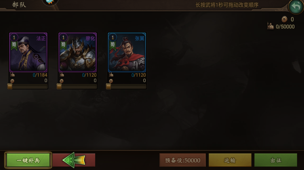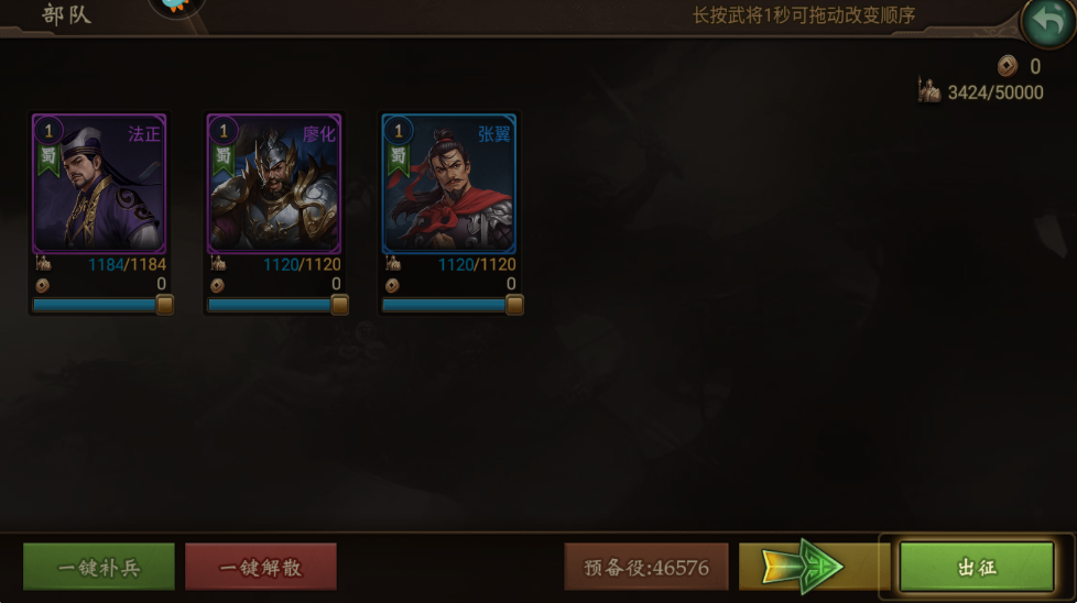 资源匮乏:优先培养五星蓝将,如双糜(糜芳、糜竺)+张翼前排,双马(马超、马谡)+刘禅后排。