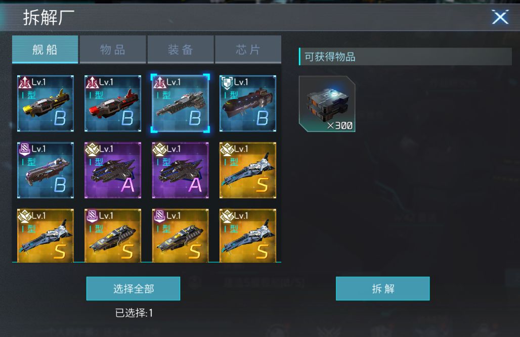 前面攻略提到过,前期资源不够,先培养A船,后面再换S船。就会用到下面的设施,拆解厂。要注意的是,舰船用的图纸是不会返还的噢。