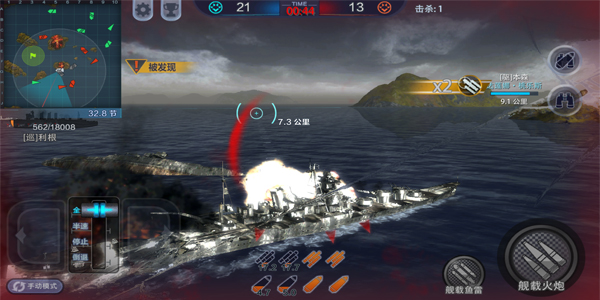 《巅峰战舰》为玩家提供了自动与手动两种操作模式,自动模式中舰船将会随着玩家设定的方向前进,玩家可以将更多精力放在对手身上,而手动模式是为更加追求操作和个性化的船长准备的,需要兼顾方向、瞄准、开炮等操作元素