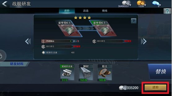 第四步:装配以后先将其进阶至满级(不升满直接改造/精炼要亏死)