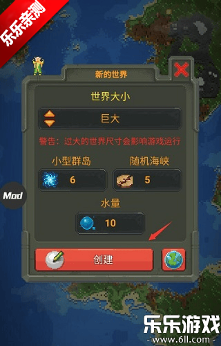 2、然后创建一个世界,选择创建好的世界大小,设置好群岛还有海峡,当然你也可以默认,然后点击创建