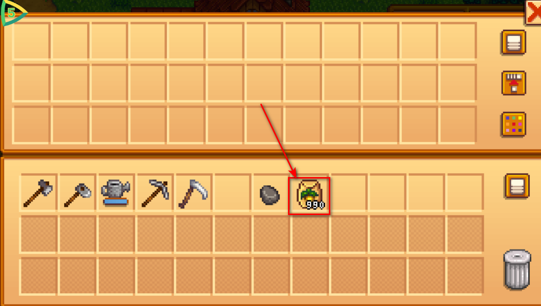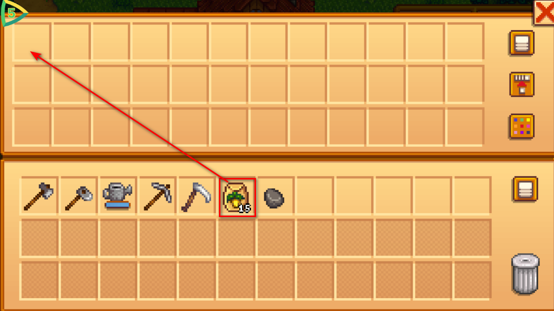11.然后我们进到宝箱中,小编演示就用捡到的15个种子了,放到宝箱。