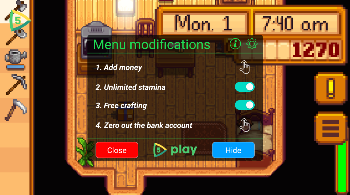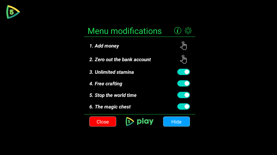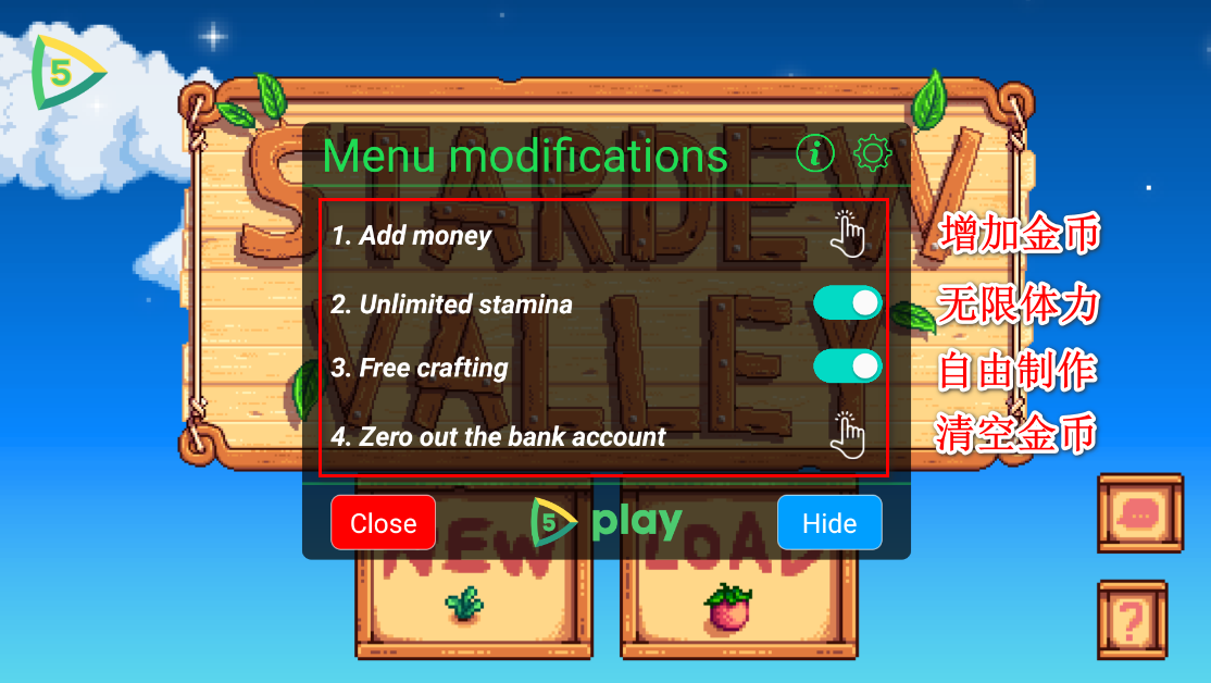 7.新增的魔法宝箱功能展示,我们先将菜单内的所有开关打开,这样方便操作。