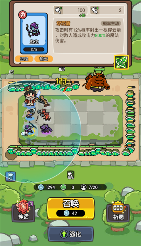 1、在游戏模式方面,主要侧重于幸运随机召唤和合成,玩家随机召唤英雄攻击怪物;