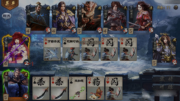 面对这种情况陈圆圆、荆轲、韩信等英雄是非常好的选择。尤其是圆圆,在男性角色较多的局中每回合稳定令敌人掉1血的能力可以说是敌人的噩梦,搭配上扁鹊的回血获胜的几率极大。