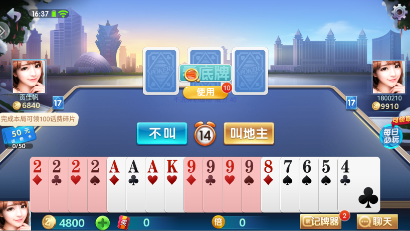 5.点击不叫或者叫地主,接着按照提示玩就好了