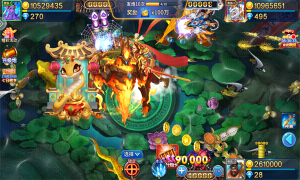 3、使用道具增强炮弹威力,提升捕鱼效率。