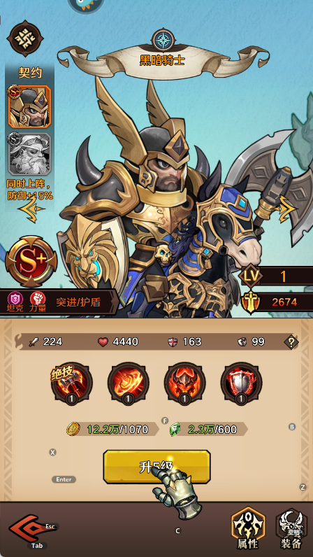 3、角色升级是提升战力的关键,升级可以强化属性或造成被动技能变化。