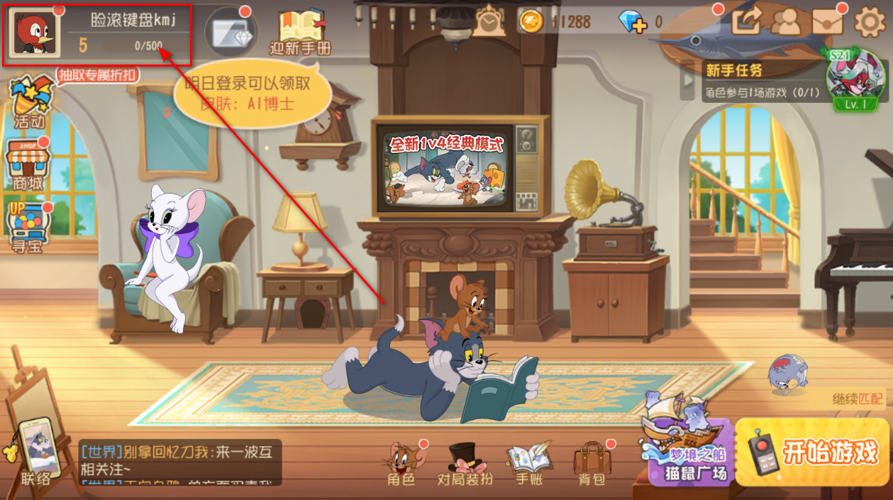 1.在游戏首页点击头像