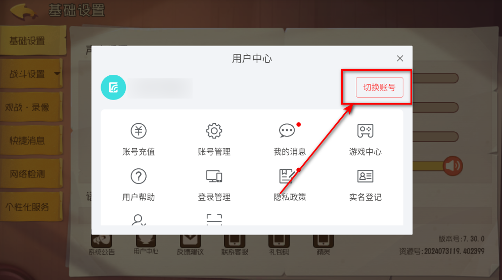 3.接着点击切换账号。
