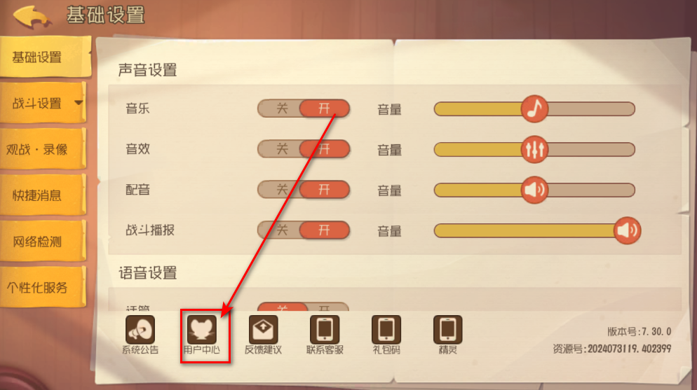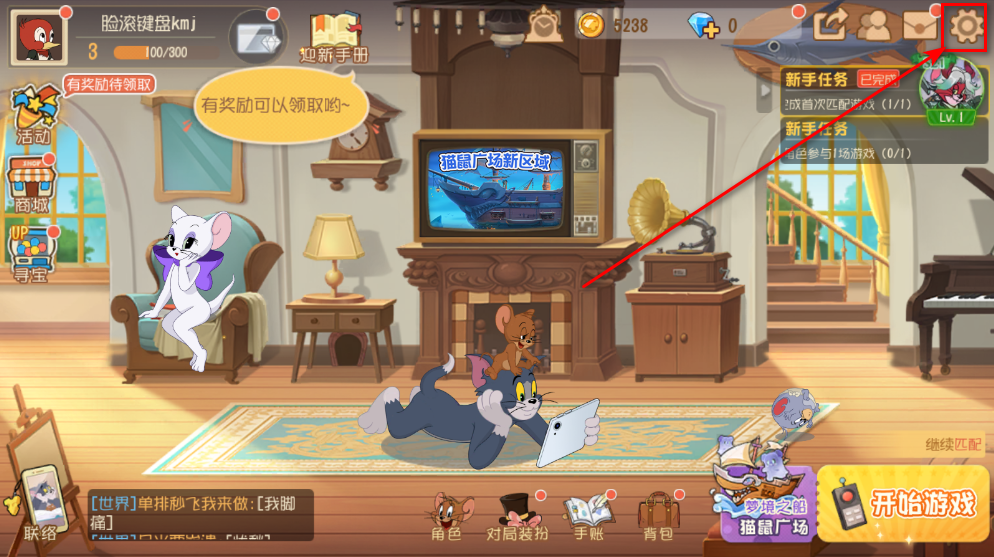1.进入游戏首页,点击右上角的设置按钮。