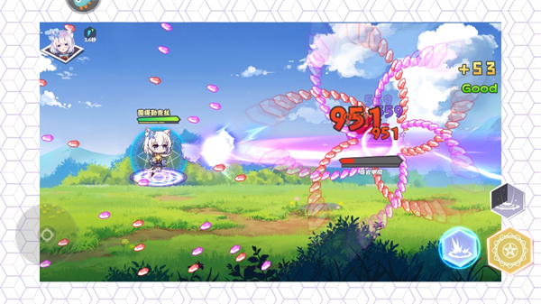 1、进入游戏后角色会自动攻击你只需要控制摇杆点击放技能