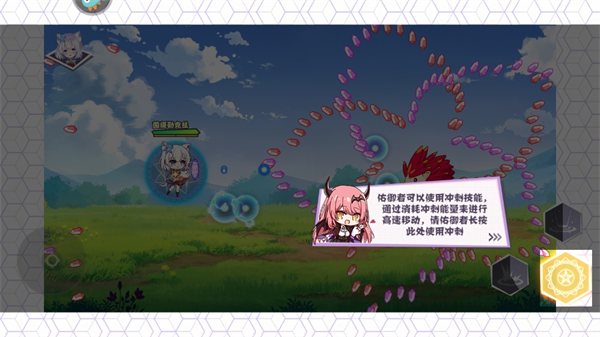 3、佑御者可以使用冲刺技能,通过消耗冲刺能量来进行高速移动,请佑御者长按此处使用冲刺