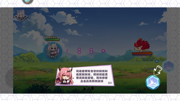 2、役魂者拥有各自的战技和魂具解放技,释放技能需要消耗能量值,情佑御者点击此处释放战技
