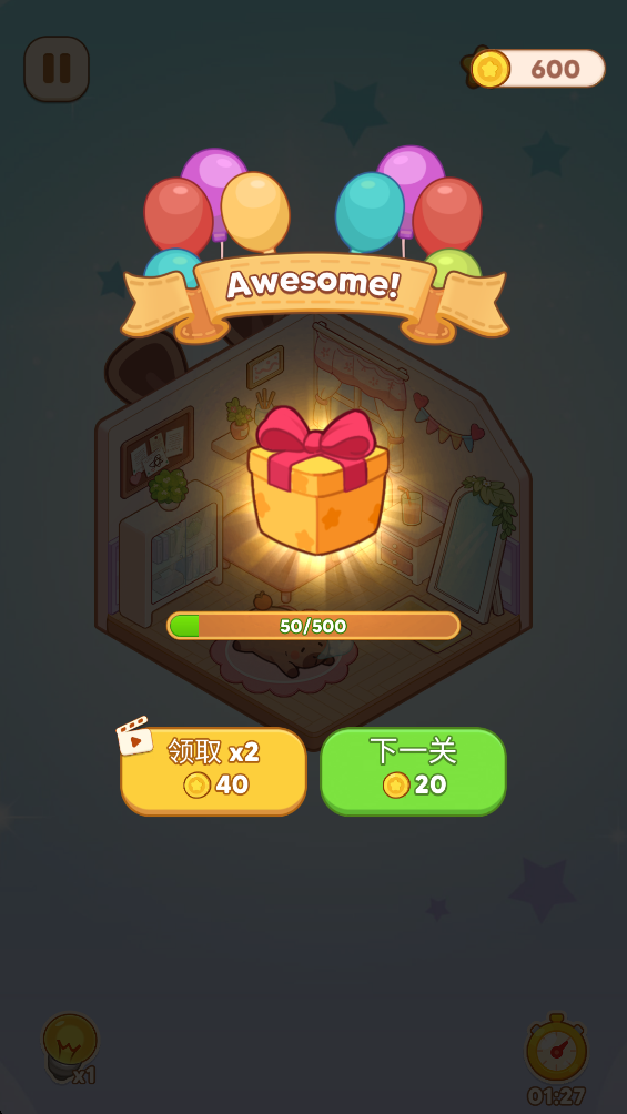 5、直到最后将整个房间的物品放置好就算闯关成功了。