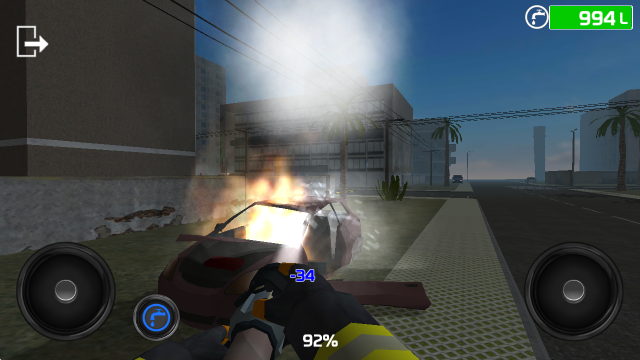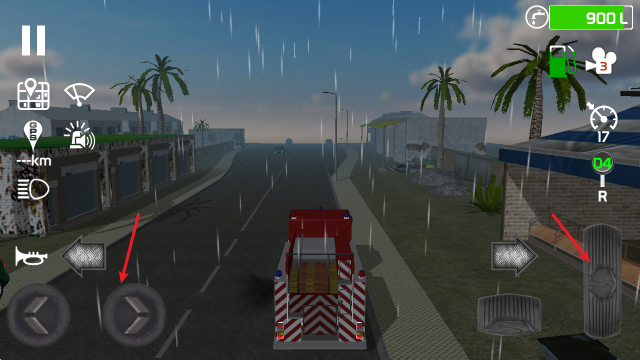 6、接着通过左侧的摇杆控制移动,右侧的摇杆控制喷水方向,点击中间的按钮即可喷水灭火。