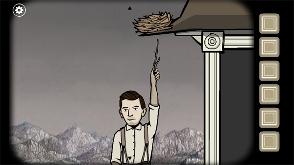 3、再次点击男士,将枝干给他,然后多次点击男士让他把房檐的鸟窝捅下来;