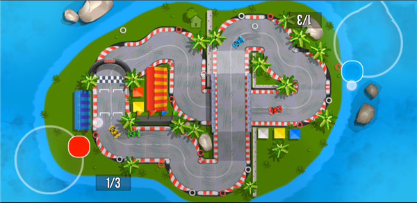 微型汽车拉力赛:玩家在圆形赛道上开车,比拼车技,看谁能先完成比赛。