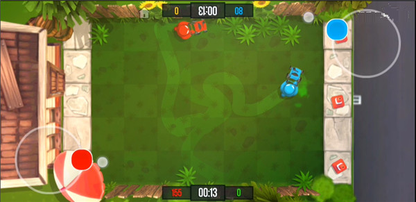 足球:至少2人对战,在圆形赛道上踢足球,谁先进球即胜利。