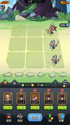 2、进入关卡后玩家可以先招募自己的小兵,点击招募按钮可以消耗金币购买小兵。