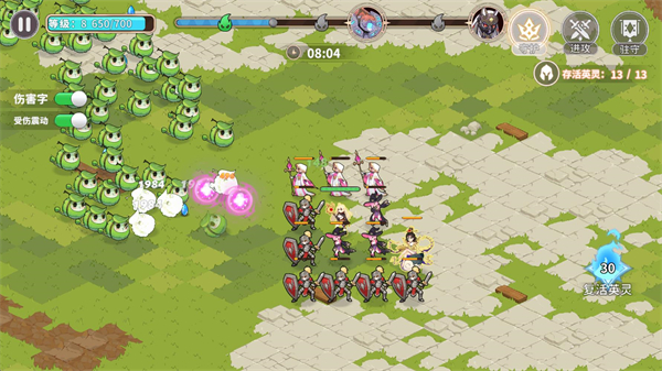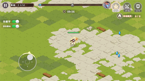 3、正式开始后左边控制角色的移动,角色会自动攻击出现的怪物敌人。