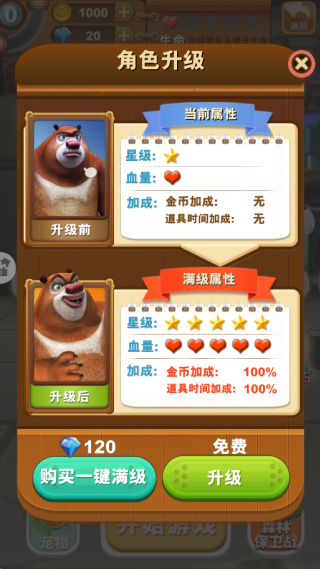 3、利用钻石还能给你的角色进行升级哦,升级可以提升血量以及金币道具的加成效果。