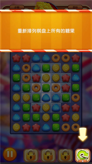 4、要是一时间没有思路,可以点击右下角重置糖果的排列。