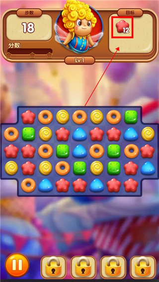 1、进入游戏,右上角的是本局目标,在步数消耗完之前达成就算过关。