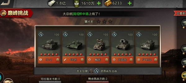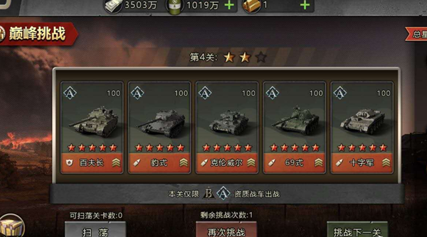 王牌对决是获取车长魂魄及升级道具的主要途径,升级车长可大幅提升战斗力,每天除免费外还可付费挑战3次!