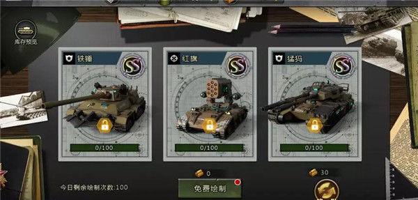坦克图纸不但可合成坦克,还能进行坦克升星大幅提升战力,解锁的城市只能获得一般图纸,最主要的获取途径还属【科研中心】,这里会从玩家身上已拥有的坦克图纸中每天随机刷新出图纸,如果有幸获得一张SS神级坦克图纸,便可在这里定向绘制,价格都是其次,主要是绘制必出图纸哦