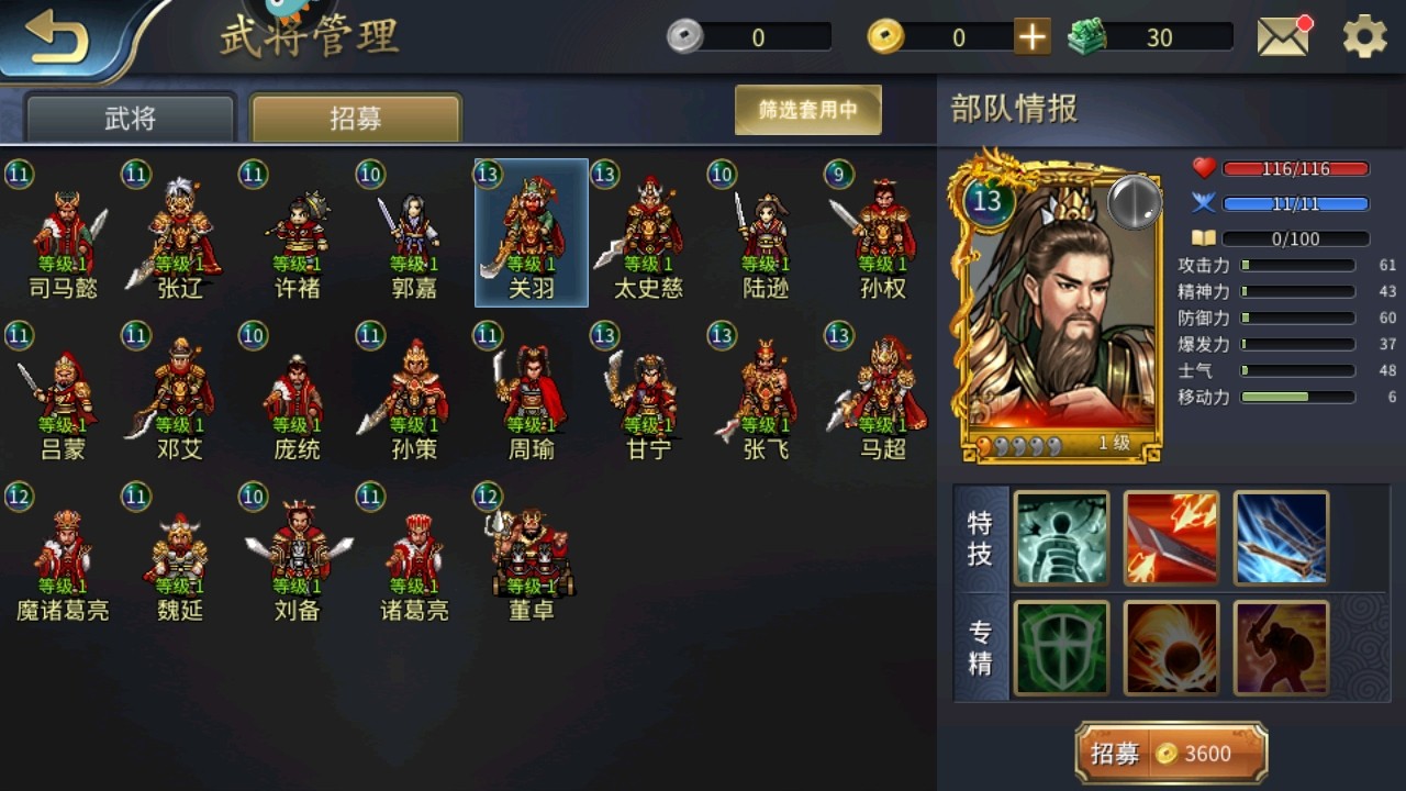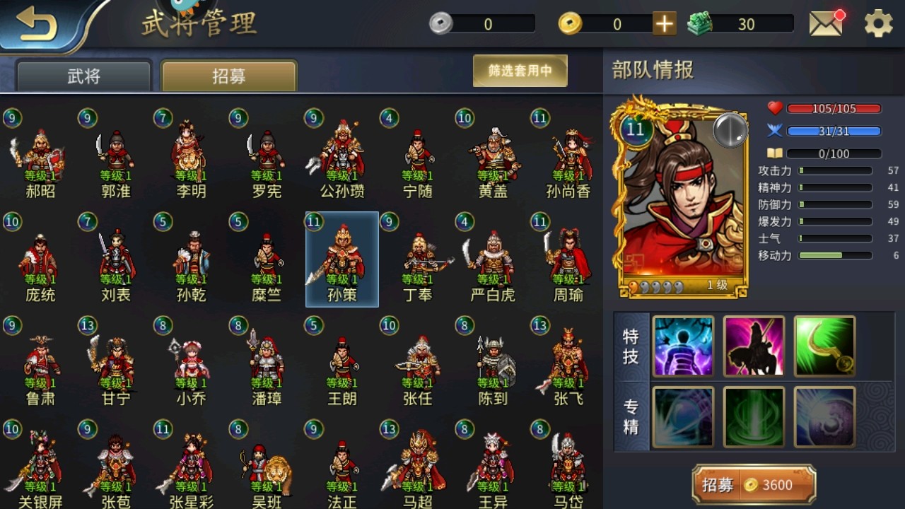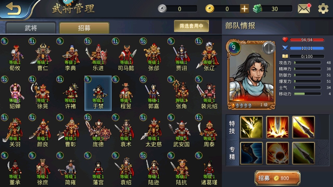 为实现节约金币的目的,我们先寻找一下30级拥有策略模仿的银币武将。