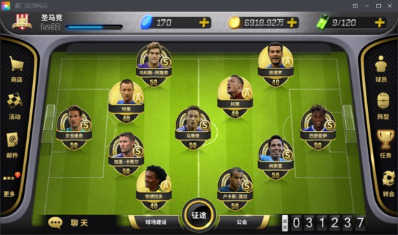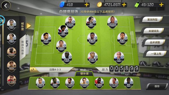目前这个阵容也不是完全体,右后卫有个A卡的阿兹皮里在培养(平民体力是个大问题啊)准备换夸德拉多,还有托蒂、纳斯里、卢卡斯3人混在其中,有贝格维奇、托蒂、巴舒雅伊3人一转,其他都是没转的,可以看出其实就这个阵容来说可提升空间还是很大的。BUFF有领袖、冲锋;后卫有盯人可有效阻止对手跳水;进攻手段有托蒂远射、纳斯里佩德罗跳水、巴舒雅伊头球、接贝格维奇长传的凌空(其实头球进球率实在太低,这个希望有所改进),特别点评一下贝格维奇,这个门员不止守门还助攻,一场起码发动2次,巴舒雅伊虽然没有凌空可是有个冲击波,配合起来还是很好使的。