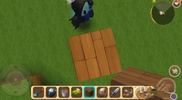 答:点击快捷栏上的斧子,拿在右手中,靠近一棵树干,手指按住树干上的方块,进度条出现,当进度条100%时树干被成功砍下。