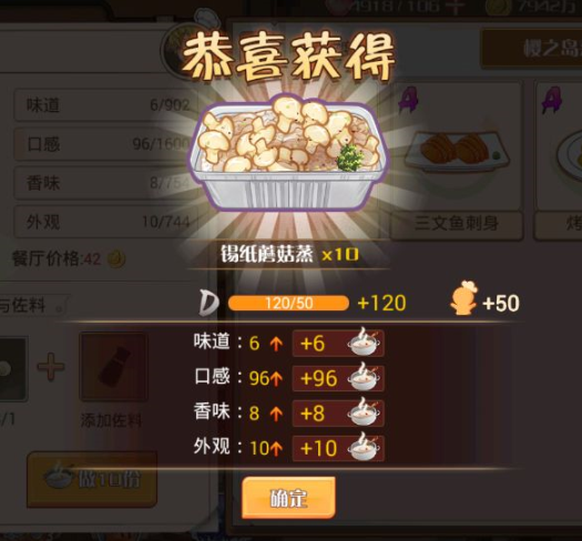 利用食材反复制作菜品还可以提升它的4围属性(味道、口感、香味、外观),不同属性会影响该菜在餐厅中的经营效率