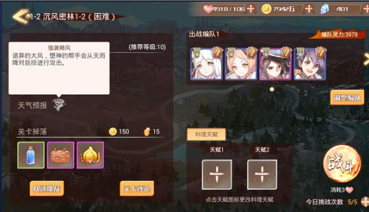此外不同关卡的天气不同,在进入战斗前最好确认一下,以便提前做好阵容调整