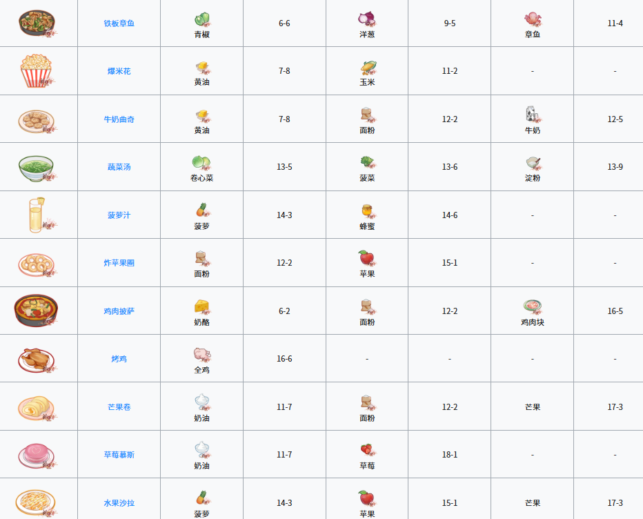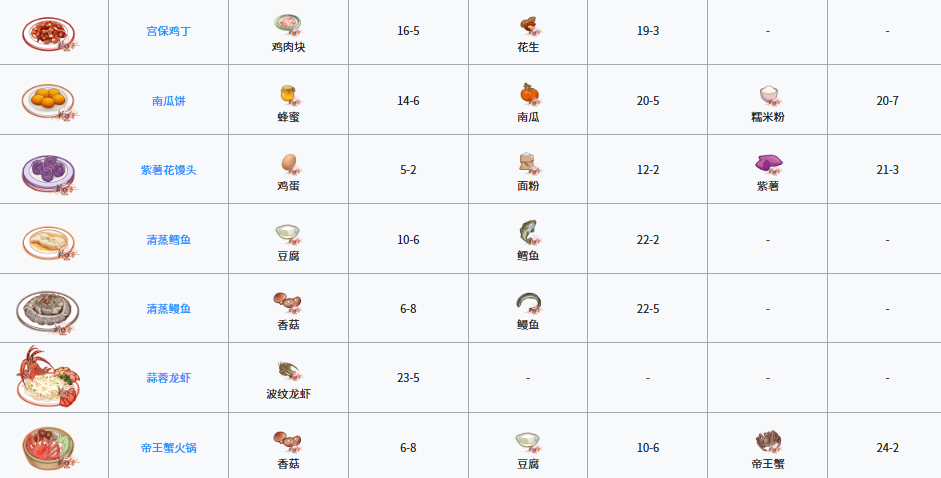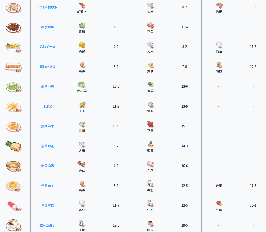这里有一个开发菜谱的小技巧,就是通过点击开发界面的放大镜图标查看菜谱图鉴,每道菜都会有所需食材的对应提示