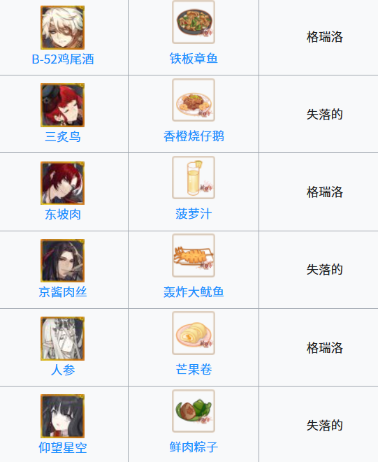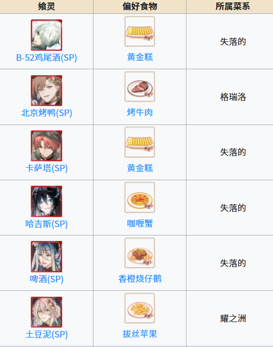 食之契约手游飨灵偏好食物
