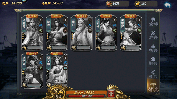 3、游戏中有众多历史上著名的武将等待玩家招募和培养,每个武将都有独特的技能和属性,玩家可以通过升级、装备、进阶等方式提升武将的实力。