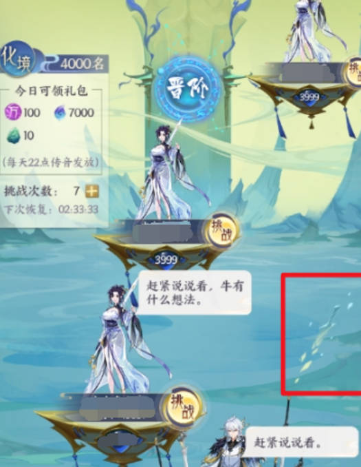 飞升仙玄界后的第二天,点击仙盟-洞天猎妖左边河流中的小鱼