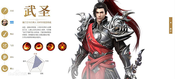 特点:武圣,坚毅的苦修者,沙场中利用炉火纯青的刀法,以泰山压顶之势切入敌阵,利用横飞的刀气撕开敌人的防线,刀影回锋间取敌将首级;困境里他亦是队友最坚强的护盾,引领众将披荆斩棘走向胜利。