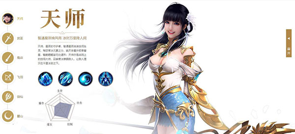 特点:天师,星辰的守护者,智通星辰启迪世间生灵,驾驭寒冰元素之力,唤天宇星外极寒彗星,魑魅魍魉皆无处遁形;天师亦是战场上的控场大师,召唤寒冰禁锢敌人,让敌人湮灭在千里冰封之下。