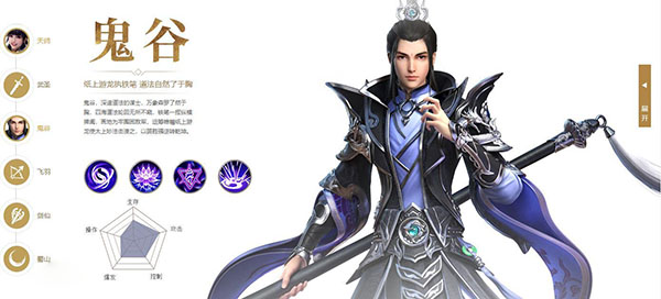 特点:鬼谷,深谙道法的谋士,万象森罗了然于胸,四海道法轮回无所不窥,铁笔一挥纵横捭阖,画地为牢围困敌军,运筹帷幄纸上游龙使太上妙法击溃之,以弱胜强逆转乾坤。
