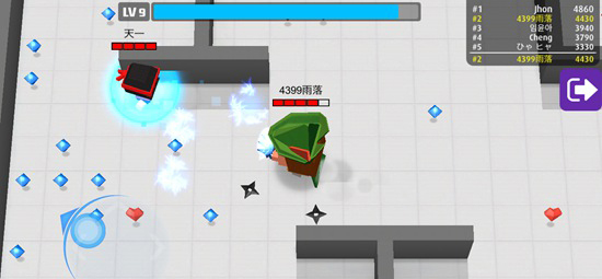 5、最后,当角色死亡则游戏结束,并根据得分获取金币,淘汰的玩家越多,那么所获得金币奖励也就越多哦。
